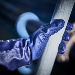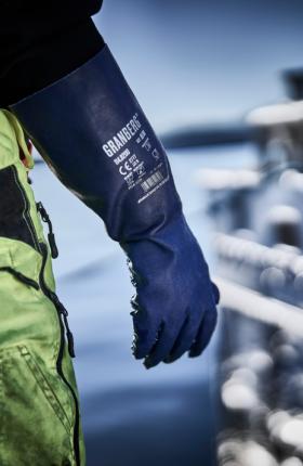 Nitrile with heavy granules on the palm and fingers. Sweat-absorbing cotton liner inside.