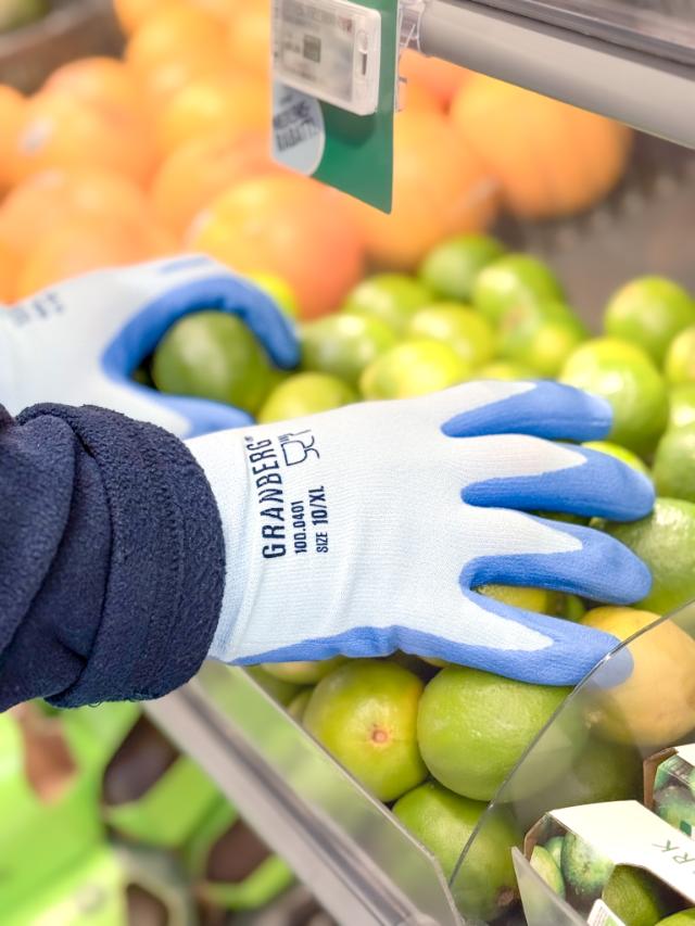 Water-based polyurethane (PU)/nitrile coating. Nylon/spandex liner.