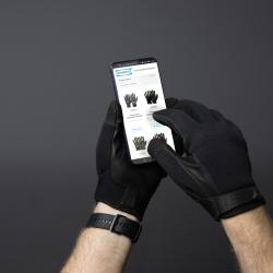 Goatskin, Kevlar® lining, touchscreen compatible, hook and loop closure.