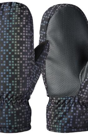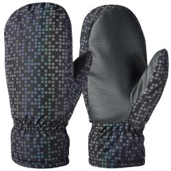 Polyester/PU palm. Polyester with reflective print on the back of the hand. Fully lined.